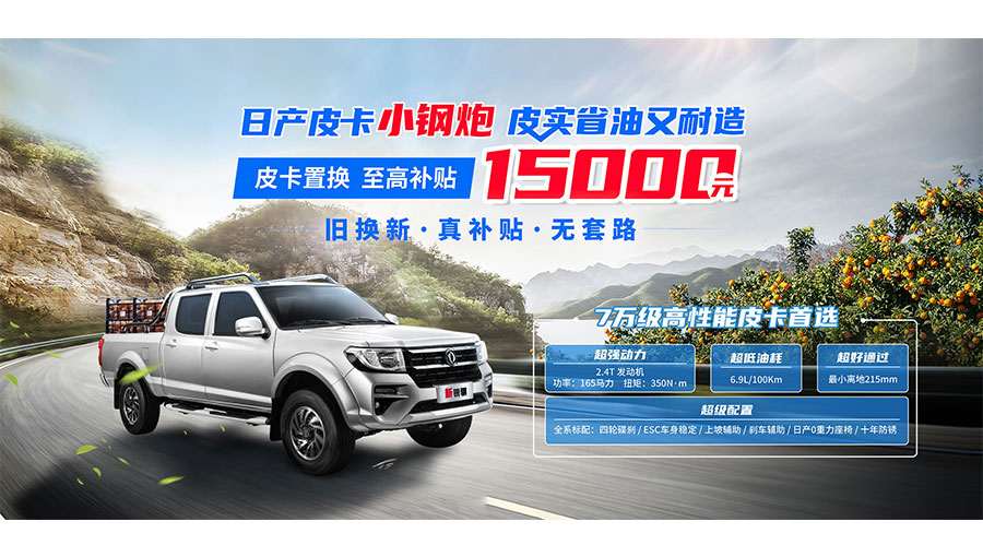 主要產(chǎn)品:NISSAN品牌NAVARA納瓦拉及其多功能車、奇駿榮耀;東風(fēng)品牌銳騏系列皮卡及其多功能車、銳騏新能源車、帕拉索、虎嘯車型;帕拉丁