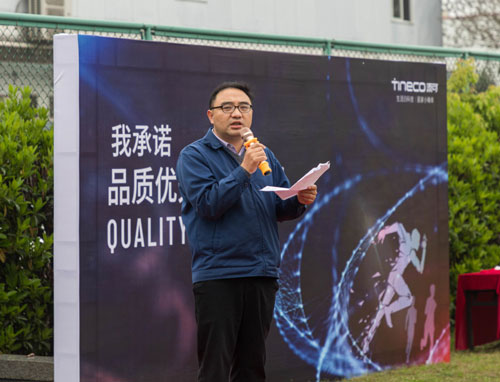 制造中心總監(jiān)劉焱南總發(fā)表演講,他強調(diào),品質(zhì)優(yōu)先是從我們每一個人做起,從我們的思想意識中就認識到品質(zhì)的高度重要性,我們要遵守工藝紀(jì)律,嚴(yán)格按照我們標(biāo)準(zhǔn)作業(yè)指導(dǎo)書來進行,每一個步驟嚴(yán)格遵守,使得我們做出來的產(chǎn)品,都是合格品。
