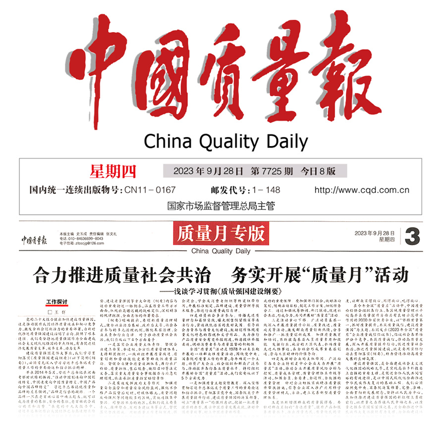 (編者按:本文作者為中國質(zhì)量檢驗(yàn)協(xié)會(huì)副會(huì)長王群,原文刊發(fā)于《中國質(zhì)量報(bào)》2023年9月28日刊第三版“工作探討”專題。)