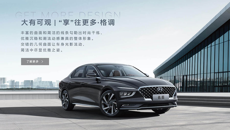 主要產(chǎn)品:第十代索納塔、第七代伊蘭特、菲斯塔、新一代ix35、新一代ix25、第四代勝達、第四代途勝、名圖、悅納等