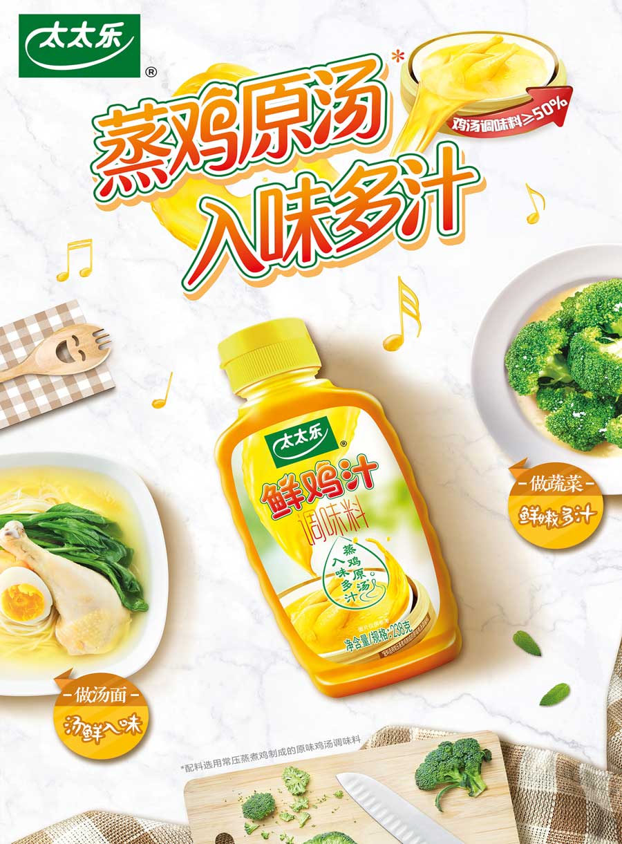 主要產品:三鮮雞精、鮮雞汁、太太樂原味鮮醬油系列、湯之鮮系列、菜譜式調料系列、蠔油系列、天天旺等