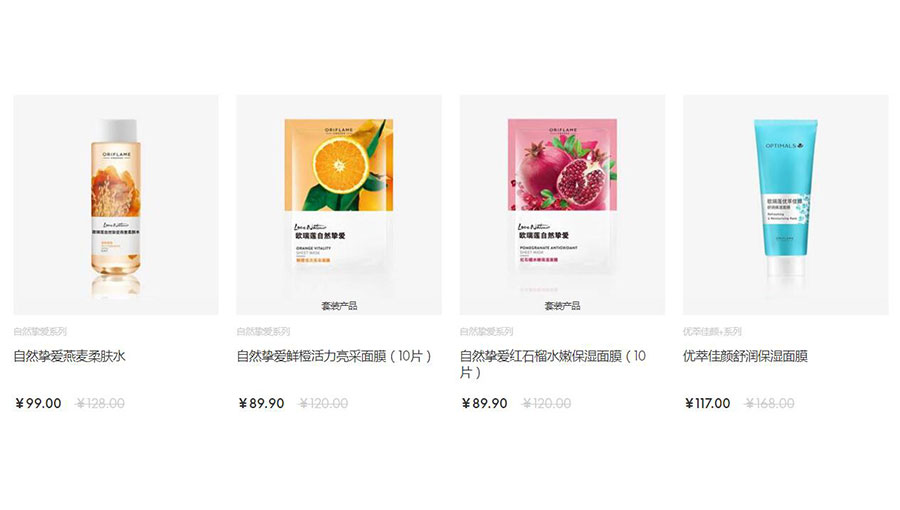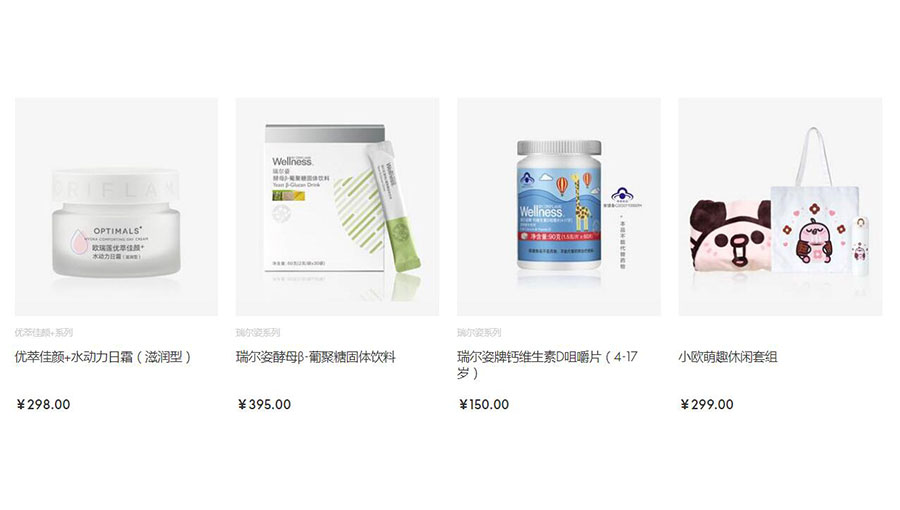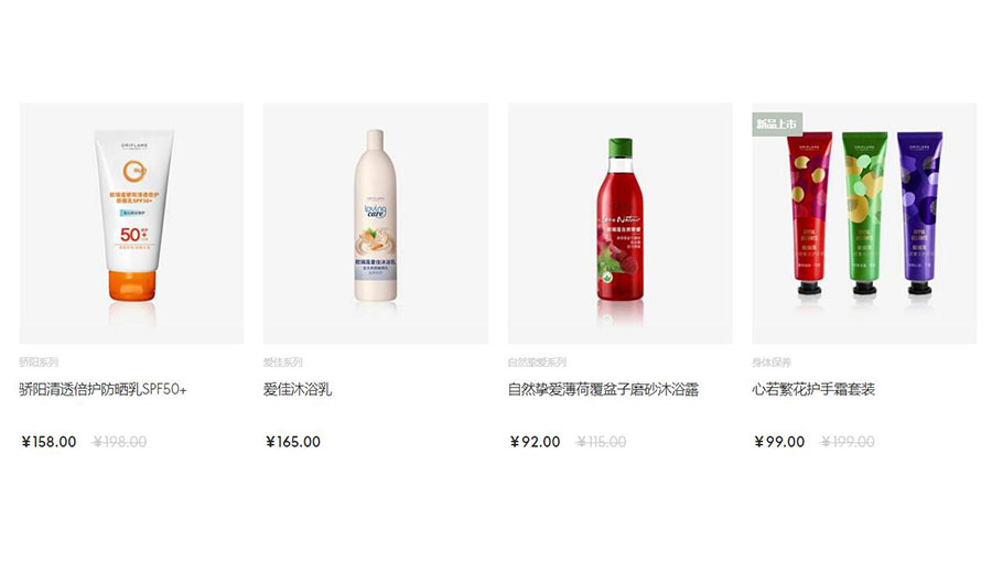 主要產(chǎn)品:歐瑞蓮護(hù)膚、護(hù)發(fā)、護(hù)體、彩妝及相關(guān)配套產(chǎn)品,預(yù)包裝食品等系列產(chǎn)品