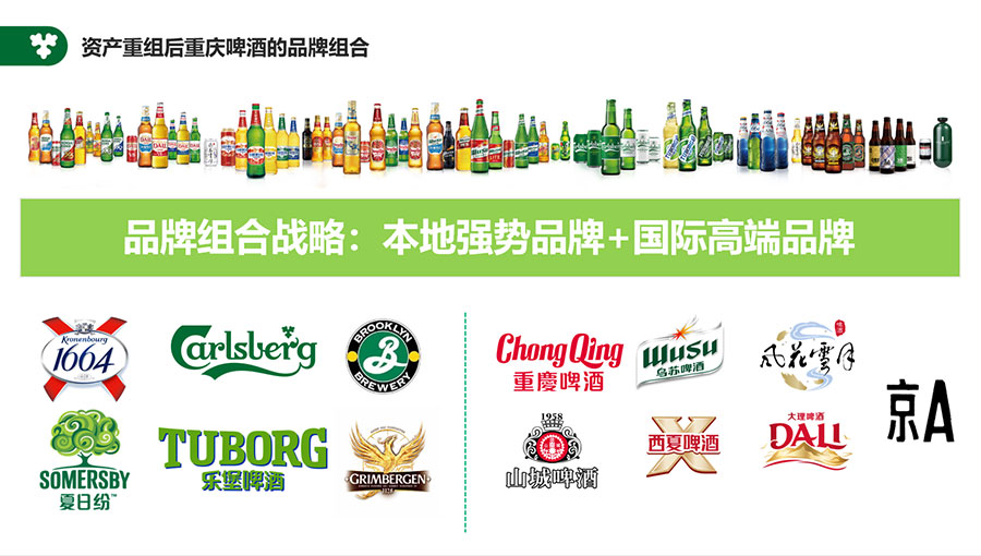 在中國,嘉士伯擁有“本地強勢品牌+國際高端品牌”的強大品牌組合。國際高端品牌方面有嘉士伯、樂堡、凱旋1664、格林堡、布魯克林等品牌,本地強勢品牌方面有重慶、山城、烏蘇、西夏、大理、風花雪月、天目湖等品牌,滿足消費者在不同場景的消費需求。