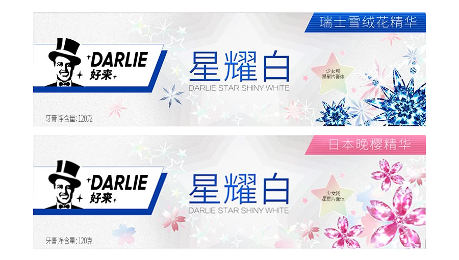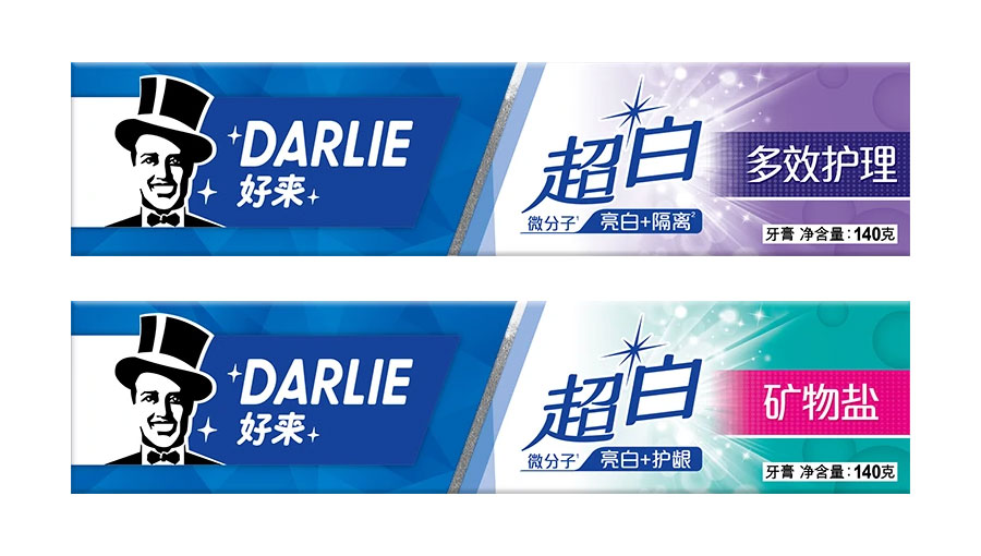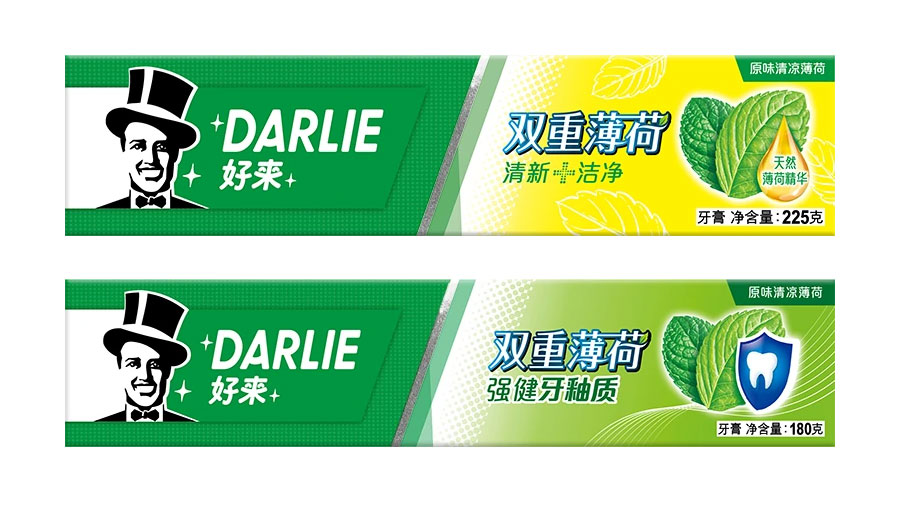 目前DARLIE好來牙膏共有數(shù)十個(gè)品種、多種規(guī)格(18g-250g),其中銷往中國大陸市場包括經(jīng)典的雙重薄荷系列、茶倍健系列、超白系列、專研護(hù)齦系列、抗敏感系列、透心爽系列,兒童牙膏系列及新增了白.酵素系列和星耀白系列等20個(gè)品種,另外還有多個(gè)品種同時(shí)銷往新加坡、馬來西亞、泰國、中國香港和中國臺灣等市場。