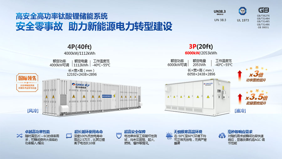 鈦酸鋰電池技術是新能源行業(yè)唯一獲得中國專利獎金獎的鋰電池產(chǎn)品技術,其應用于儲能電池和動力電池具有超高安全性,在快充放、耐寬溫、長壽命等方面同樣具有卓越的性能。格力鈦電池系列產(chǎn)品具有不起火不爆炸高安全、6分鐘快充放、-50℃至60℃耐寬溫特性,循環(huán)充放電次數(shù)高達30000多次,使用壽命長達30年。格力鈦電池經(jīng)利鋸切割、尖針穿刺、強力擠壓、電鉆沖孔、短路充放電、高溫加熱、槍擊等極限條件測試,均未發(fā)生冒煙、起火、燃燒、爆炸等現(xiàn)象。