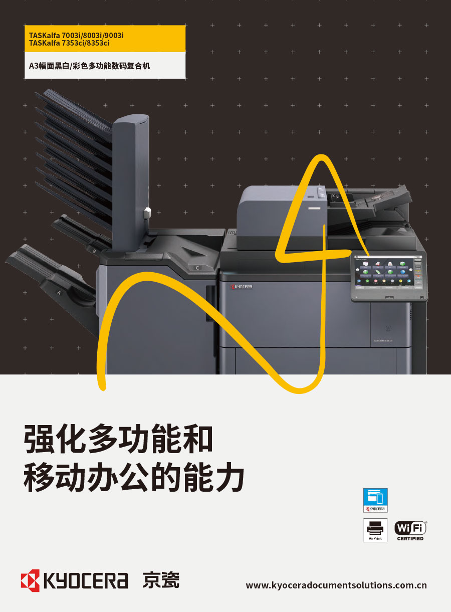 主要產(chǎn)品:KYOCERA京瓷激光打印機,一體機,復(fù)合機,生產(chǎn)型彩色噴墨數(shù)碼印刷系統(tǒng)及辦公信息系統(tǒng)的開發(fā)、設(shè)計、系統(tǒng)集成