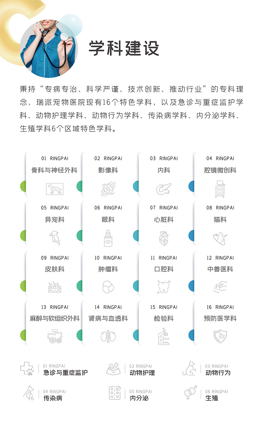 目前瑞派寵物醫(yī)院所轄門店超600家,覆蓋全國27個省,70余座城市,年接診量超300萬例,員工6000余名,其中博士9人,碩士126人,醫(yī)療專業(yè)人員3000余人,執(zhí)業(yè)獸醫(yī)師1800余人。瑞派寵物醫(yī)院與浙江大學(xué)、中國農(nóng)業(yè)大學(xué)等全國100多所院校開展產(chǎn)學(xué)研合作,與碩騰、勃林格、皇家、瑞普生物等國內(nèi)外產(chǎn)業(yè)領(lǐng)軍企業(yè)建立戰(zhàn)略合作關(guān)系,擁有國內(nèi)頂級專家領(lǐng)銜的專家團(tuán)隊。瑞派秉持“以客戶為中心,堅持以奮斗者為本”的核心價值觀,致力于發(fā)展好每一位員工!發(fā)展好每一家醫(yī)院!堅持服務(wù)好每一只寵物和每一位寵主!