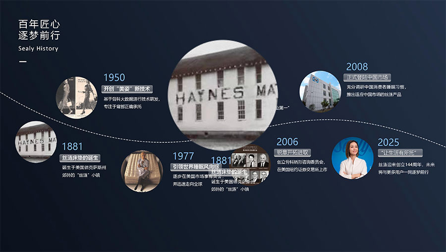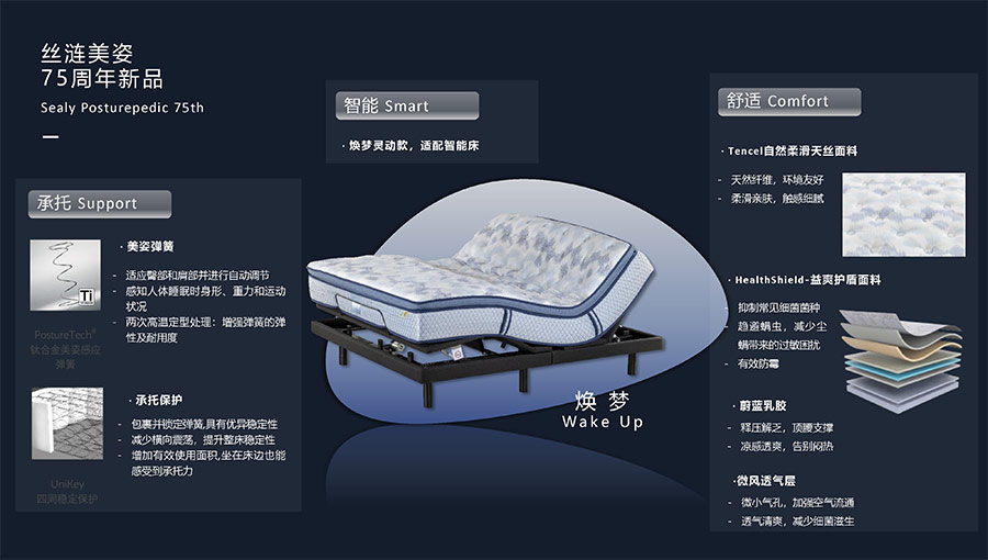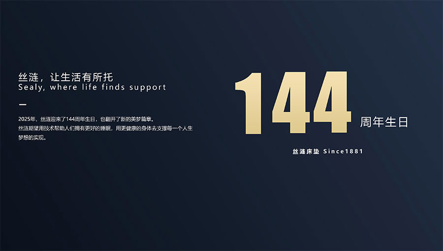 絲漣SEALY1881年誕生于美國(guó),自1885年第一張絲漣床墊問(wèn)世伊始,便憑借其卓越性能與舒適安睡體驗(yàn)聲名大噪。1950年,絲漣開創(chuàng)床墊與醫(yī)學(xué)權(quán)威共研的先河,絲漣美姿以科學(xué)的脊柱支撐理念徹底重塑了床墊行業(yè)。75年來(lái),持續(xù)的技術(shù)升級(jí)和創(chuàng)新使得美姿彈簧不斷進(jìn)化,只為打造更加舒適健康的睡眠體驗(yàn)。