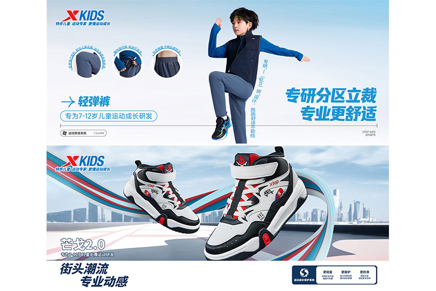 多年來,特步兒童在成長(zhǎng)中,變革傳統(tǒng)鞋服企業(yè)的運(yùn)營(yíng)理念,特步兒童整合產(chǎn)業(yè)資源、規(guī)劃跨行業(yè)發(fā)展戰(zhàn)略、積極創(chuàng)造行業(yè)全新的品牌推廣模式、多元化的商品開發(fā)、科學(xué)的渠道規(guī)劃和創(chuàng)新的店鋪分級(jí)運(yùn)營(yíng)模式,并加大研發(fā)力度滿足新時(shí)代兒童消費(fèi)者需求,取得了一定的市場(chǎng)地位。2023年,特步兒童推出特步兒童運(yùn)動(dòng)專家,更懂運(yùn)動(dòng)成長(zhǎng)的全新品牌定位,聚焦校園運(yùn)動(dòng)場(chǎng)景,為中國(guó)兒童提供更好的運(yùn)動(dòng)裝備,成為專業(yè)校園運(yùn)動(dòng)的引領(lǐng)者。