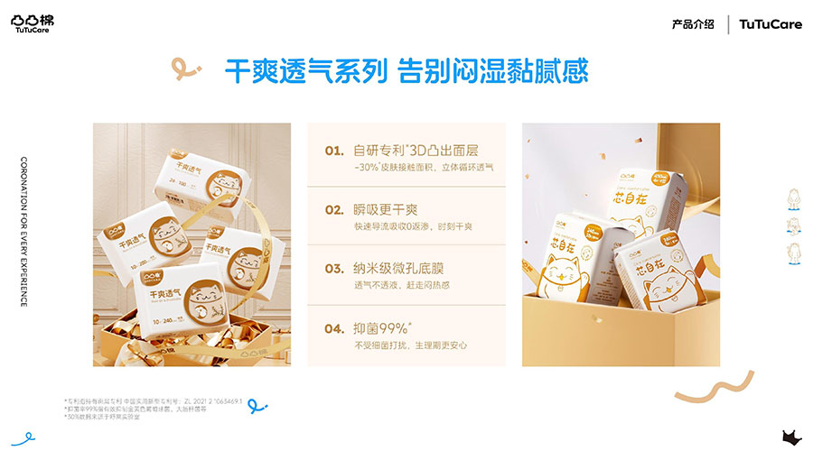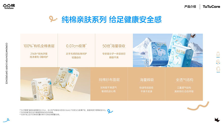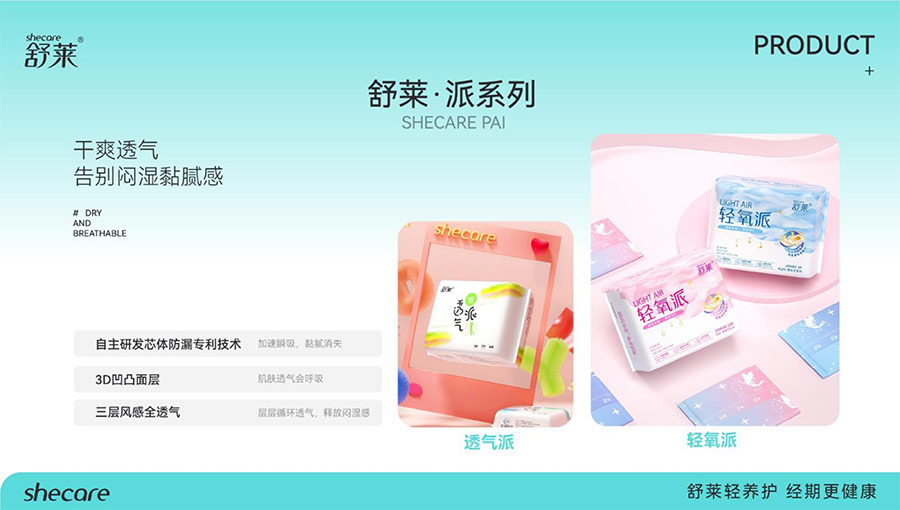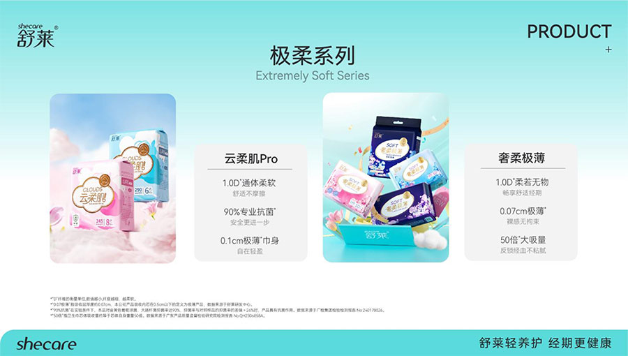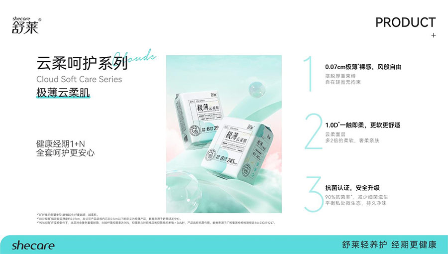 河南舒萊衛(wèi)生用品有限公司旗下?lián)碛惺嫒R、凸凸棉、純也、優(yōu)月季等品牌,產(chǎn)品涵蓋衛(wèi)生巾、安睡褲、護(hù)理液等品類。其中,舒萊品牌:S.H.E.CARE經(jīng)期健康管理體系,從科學(xué)、健康、舒適三大維度全方位呵護(hù)女性經(jīng)期健康。舒萊“輕養(yǎng)護(hù)”以漢方調(diào)養(yǎng)為根基,以科學(xué)抑護(hù)為本色,全方位調(diào)節(jié)女性經(jīng)期健康指數(shù),輕松實現(xiàn)經(jīng)期護(hù)理;凸凸棉品牌:獨(dú)創(chuàng)A.C.E.CARE品質(zhì)管理體系,以Air Tech干爽透氣、Comfort Tech舒適體感、Ecology Tech安全衛(wèi)生為核心,打造更懂女性的護(hù)理體驗。