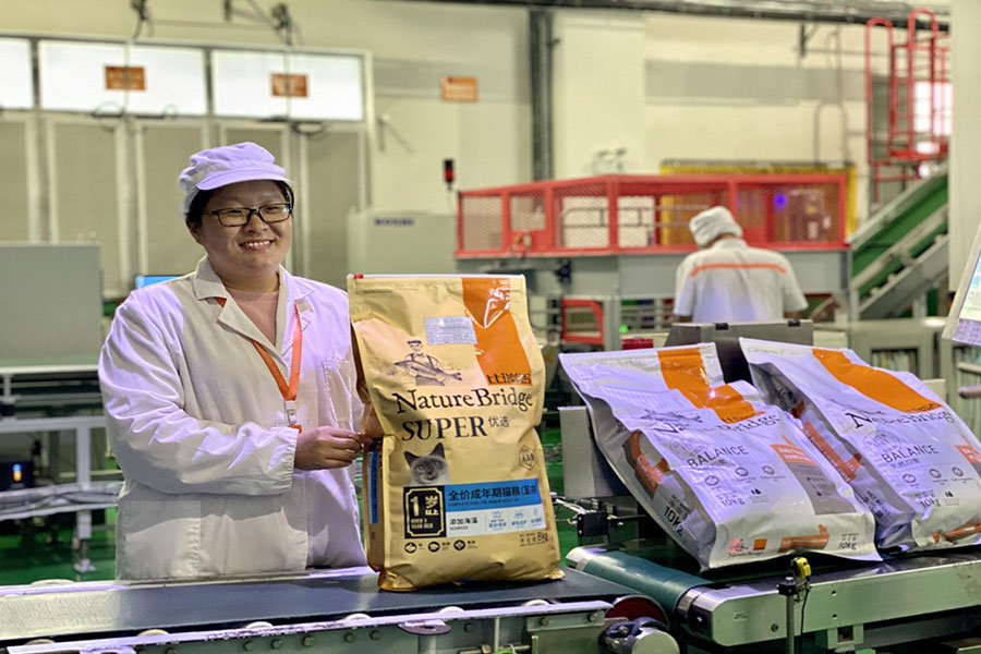 目前,比瑞吉擁有兩條固態(tài)寵物配合飼料生產(chǎn)線和一條半固態(tài)寵物配合飼料生產(chǎn)線,這些生產(chǎn)線均采用國際和國內(nèi)最先進(jìn)的設(shè)備,確保了產(chǎn)品質(zhì)量的穩(wěn)定性和可靠性。固態(tài)寵物配合飼料生產(chǎn)線由自動(dòng)配料系統(tǒng)、混合機(jī)、粉碎機(jī)、膨化機(jī)、噴涂機(jī)、振動(dòng)篩等組成,產(chǎn)能達(dá)到5噸/小時(shí);半固態(tài)寵物配合飼料生產(chǎn)線則與利樂公司合作,采用密封灌裝的利樂佳包裝技術(shù),日產(chǎn)能高達(dá)30噸。