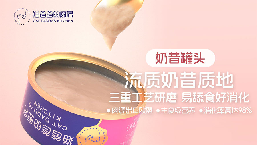 2015年,面對(duì)十年前參差不齊的貓糧品質(zhì),品牌創(chuàng)始人貓爸在貼吧分享的自制貓飯被網(wǎng)友瘋搶?zhuān)谑牵?ldquo;貓爸爸的廚房”就此誕生。