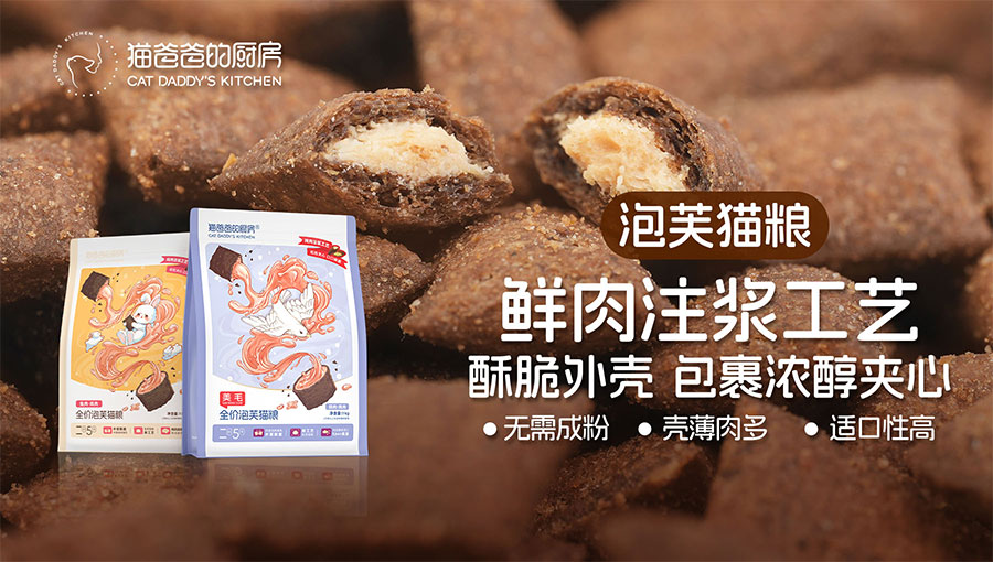 2023年,貓爸爸的廚房發(fā)布泡芙貓糧火爆全網(wǎng),上新期間奪得抖音母嬰總榜第一名,至今還是炙手可熱的明星產(chǎn)品。