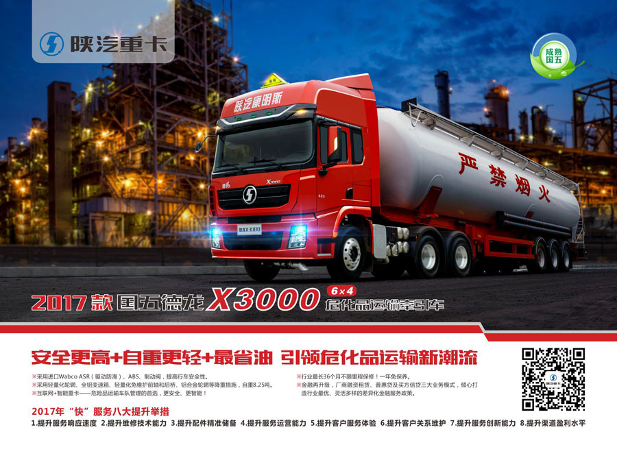 作為節(jié)能與新能源汽車產(chǎn)業(yè)的倡導(dǎo)者和推動(dòng)者,陜汽在節(jié)能與新能源商用車領(lǐng)域具有一流的技術(shù)及產(chǎn)品研發(fā)優(yōu)勢,擁有38項(xiàng)LNG重卡專利技術(shù),承擔(dān)了國家863新能源商用車開發(fā)項(xiàng)目,具備了新能源商用車系統(tǒng)集成及核心零部件開發(fā)能力。在LNG、甲醇、二甲醚等節(jié)能重卡領(lǐng)域市場占有率超過45%;純電動(dòng)碼頭牽引車成功進(jìn)入美國市場,實(shí)現(xiàn)了中國重卡產(chǎn)品在歐美發(fā)達(dá)國家市場的突破。