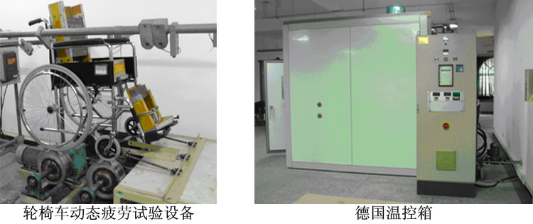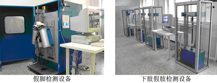 中心建有多個檢測室,擁有德國WEISS公司出產(chǎn)的6立方米恒溫恒濕氣候試驗箱;日本島津公司生產(chǎn)的寬范圍靜、動態(tài)材料試驗機;專用假肢、輪椅車檢測設備;數(shù)十臺國際先進的康復輔具檢測設備。為適應國際最新下肢假肢檢測標準ISO10328(已等同采用為國家標準GB/T18375)的要求,中心投資380萬元購置了英國Si-Plan公司的最新國際假肢檢測設備5臺套,可進行下肢假肢動、靜態(tài)結構強度試驗、踝足試驗、膝屈曲限位試驗、膝鎖試驗。