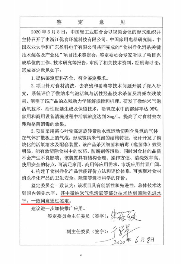 具有自主知識產權的“微納米氣泡活氧羥基”(UISH MOH+ ?)技術被中國輕工業(yè)聯(lián)合會鑒定為國際先進。
