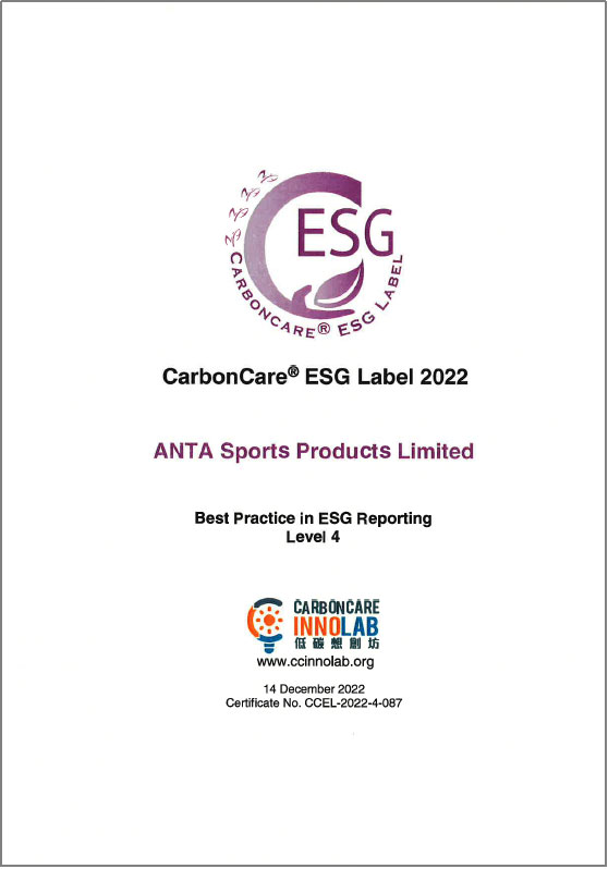 此外,安踏集團(tuán)于低碳想創(chuàng)坊(Carbon Care Innovation Lab)中獲頒「ESG報(bào)告最佳匯報(bào)實(shí)踐第四級(jí)」,較去年提升兩級(jí),反映集團(tuán)ESG報(bào)告表現(xiàn)優(yōu)異,在公司董事局的問責(zé)度、實(shí)質(zhì)性評(píng)估、社會(huì)關(guān)鍵績(jī)效指標(biāo)的披露,以及企業(yè)氣候行動(dòng)的努力亦得到外界的認(rèn)可。安踏集團(tuán)曾于過往連續(xù)三年成功取得「低碳關(guān)懷標(biāo)簽」,因此本年度獲額外頒發(fā)「低碳關(guān)懷星級(jí)標(biāo)簽」,以表彰過往在ESG方面的成果。