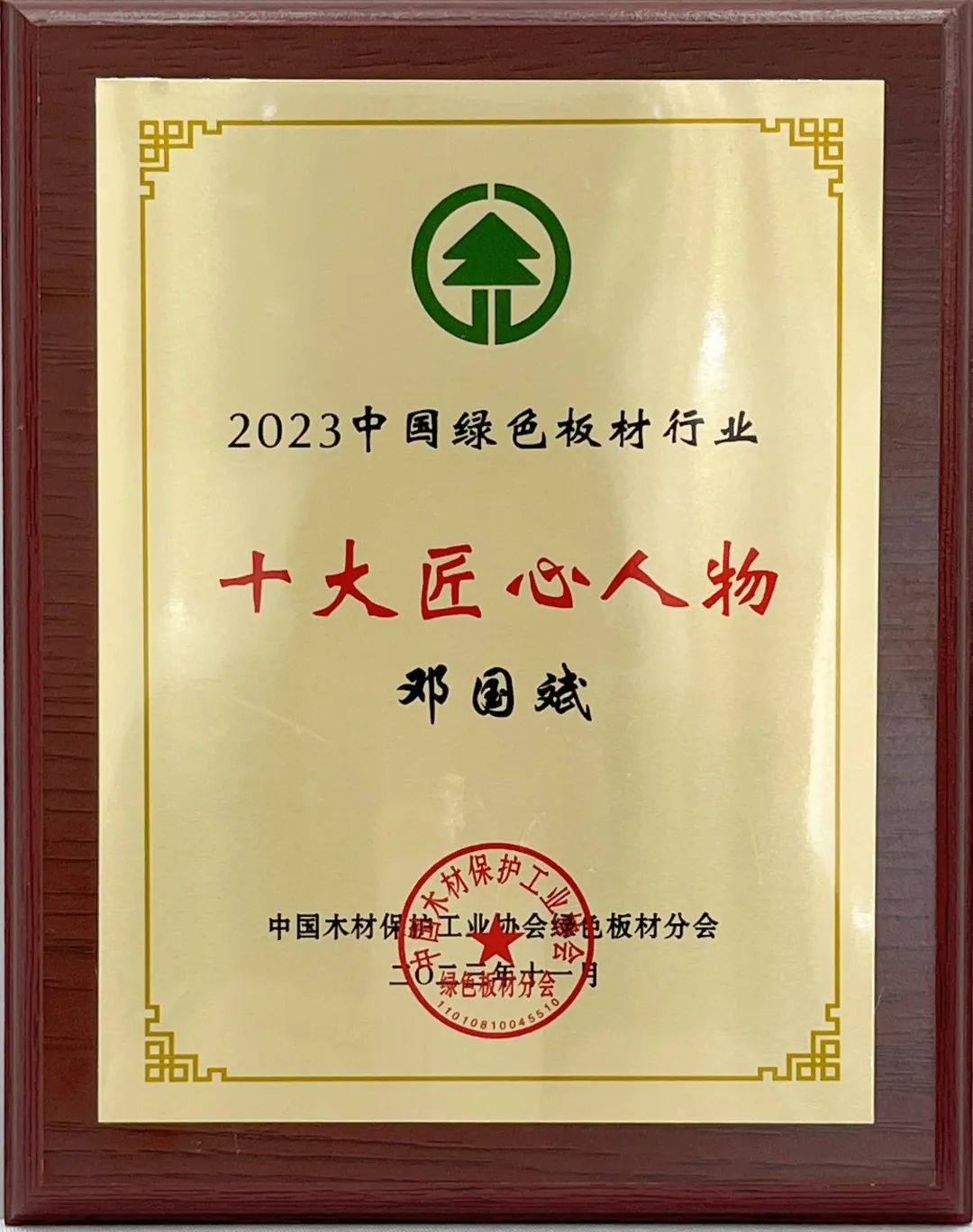 此外,憑借持續(xù)在環(huán)保型裝飾材料的研發(fā)和推廣上的領(lǐng)先優(yōu)勢,福漢木業(yè)還榮獲了“2023年中國綠色板材品牌十強(qiáng)企業(yè)”“2023年中國綠色板材行業(yè)十大匠心人物”兩項(xiàng)榮譽(yù)。