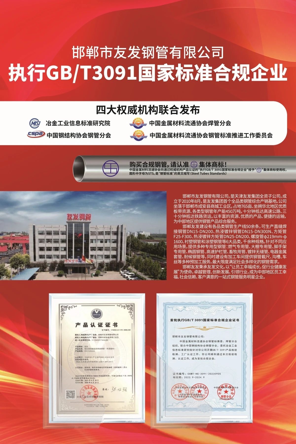 事實上,作為鋼管行業(yè)上市企業(yè),友發(fā)集團一直以來都致力于以標準引領行業(yè)發(fā)展的事業(yè)當中。截至目前,友發(fā)集團受國家鋼標委委托,牽頭起草、修訂和參與起草、修訂了15項國家標準、行業(yè)標準。其中,2016年6月1日開始施行的GB/T3091-2015 《低壓流體輸送用焊接鋼管》國家標準,在友發(fā)率先得到全面執(zhí)行,所有友發(fā)產(chǎn)品均符合新國標,充分保障產(chǎn)品質量和維護用戶權益。
