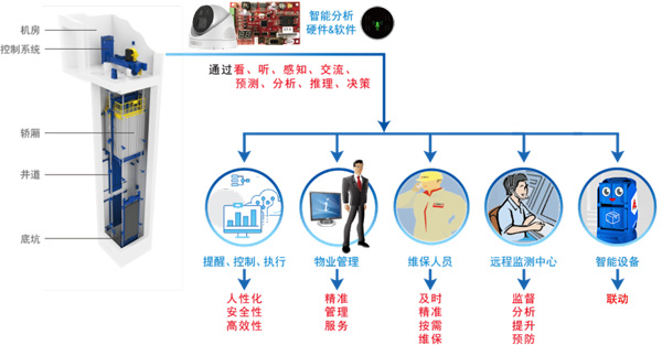 愛登堡人工智能綠色曳引驅動乘客電梯通過搭載先進傳感器、控制器、執(zhí)行器等裝置,結合信息通信、互聯(lián)網、大數(shù)據(jù)、云計算、傳感檢測等新技術,具備與人類智能(視覺、聽覺、感知、決策、交互、語言、執(zhí)行)相關的功能。