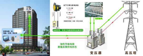 愛登堡自主研發(fā)的集成四象限變頻器,利用上升和下降的不平衡重量將勢能轉化為動能和電能發(fā)電,給樓宇的用電設備使用、減少樓宇設備向外界獲取的電能。愛登堡綠色電梯節(jié)能減碳技術,降低產品能耗,減少環(huán)境污染,推動社會綠色低碳發(fā)展,為實現(xiàn)碳達峰碳中和做出一份貢獻。
