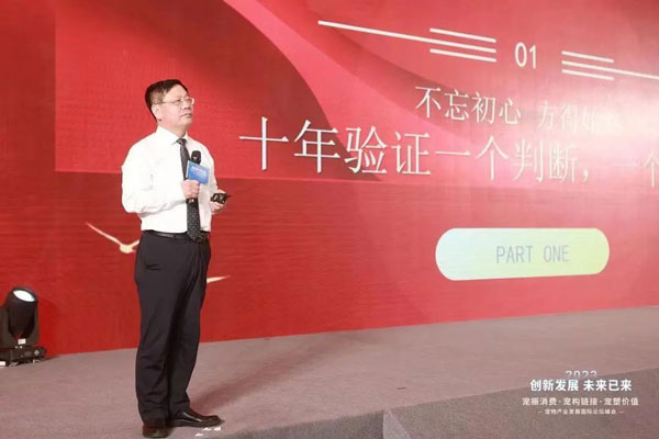 李守軍董事長攜瑞派領(lǐng)導(dǎo)團(tuán)上臺致祝酒詞,回首崢嶸歲月欣慰神馳,展望錦繡前程壯懷激越,舉杯共慶瑞派十周年華誕。接續(xù)邁步揚帆,任憑浪遏飛舟,為實現(xiàn)寵物產(chǎn)業(yè)的宏偉目標(biāo),保持戰(zhàn)略定力,堅持守正創(chuàng)新!