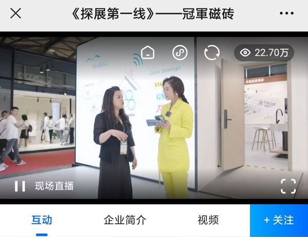 線上經(jīng)濟時代,新媒體平臺各行其道,借此展會契機,冠軍磁磚攜手騰訊家居|貝殼頻道開展“探展第一線”線上直播活動,由設計好物·主理人、騰訊家居|貝殼頻道總裁 張英梅(YOYO)傾情出鏡,冠軍磁磚巖板中心副總經(jīng)理 唐小敏親自上陣。騰訊家居|貝殼平臺直播,“智造聯(lián)盟”、“冠軍磁磚官方”等賬號平臺同步轉播,截止直播結束,線上觀看量超230000人次。從展位帶逛、巖板應用區(qū)展示到冠軍巖板優(yōu)勢分析解讀及品牌戰(zhàn)略布局,帶線上觀眾沉浸式觀展,直播間實時粉絲互動,線上氣氛火熱。