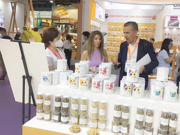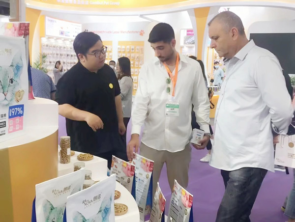 展會(huì)現(xiàn)場(chǎng),來(lái)賓絡(luò)繹不絕,吸引了不少來(lái)自國(guó)內(nèi)外的消費(fèi)者、供應(yīng)商,銷(xiāo)售人員不斷與客戶(hù)溝通、交流、探討。來(lái)自深圳的小張表示:“自家貓咪最喜歡朗諾棒棒糖,這次特意從深圳趕來(lái)參展。這次最驚喜的是凍干雪糕,沒(méi)想到小貓咪也有專(zhuān)屬雪糕,一定要買(mǎi)回去讓主子嘗嘗。”從香港趕來(lái)的米妮是摯味全價(jià)凍干貓糧的“粉絲”,這次特意來(lái)“面基”,找到朗諾展位的那一刻,就像多年好友重逢,倍感親切。