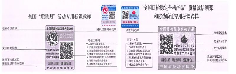 【全國(guó)“質(zhì)量月”活動(dòng)專(zhuān)用標(biāo)識(shí)】具有專(zhuān)屬的知識(shí)產(chǎn)權(quán)(經(jīng)中國(guó)版權(quán)保護(hù)中心審核,國(guó)家版權(quán)局于2015年7月16日對(duì)全國(guó)“質(zhì)量月”活動(dòng)專(zhuān)用標(biāo)識(shí)頒發(fā)了《作品登記證書(shū)》,登記號(hào):國(guó)作登字-2015-L-00188457),基本規(guī)格為5cm2,集電話電碼防偽查詢、二維碼在線掃描、微信驗(yàn)證、網(wǎng)站查詢等多種功能于一體,綜合運(yùn)用了紐索幣紋、微縮文字、熒光激發(fā)油墨等多種防偽技術(shù);專(zhuān)用標(biāo)識(shí)加貼在企業(yè)產(chǎn)品或包裝上,消費(fèi)者(用戶)只需要用座機(jī)或手機(jī)電話撥打全國(guó)范圍內(nèi)均不需要加區(qū)號(hào)的特服號(hào)碼95105365或使用手機(jī)掃描二維碼或登陸網(wǎng)站(http://www.12365114.cn)就可直接查詢驗(yàn)證加貼專(zhuān)用標(biāo)識(shí)的產(chǎn)品為第三方質(zhì)量專(zhuān)業(yè)機(jī)構(gòu)權(quán)威證明的全國(guó)質(zhì)量誠(chéng)信優(yōu)秀典型企業(yè)生產(chǎn)(銷(xiāo)售)的質(zhì)量誠(chéng)信安全可靠好產(chǎn)品,形成企業(yè)自己獨(dú)有的比較優(yōu)勢(shì)。