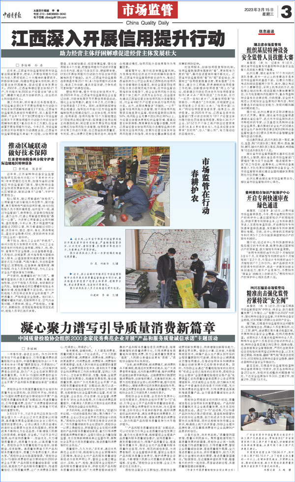 中國質(zhì)量報(bào):凝心聚力譜寫引導(dǎo)質(zhì)量消費(fèi)新篇章——中國質(zhì)檢協(xié)會(huì)組織兩千多家企業(yè)開展“產(chǎn)品和服務(wù)質(zhì)量誠信承諾”主題活動(dòng)