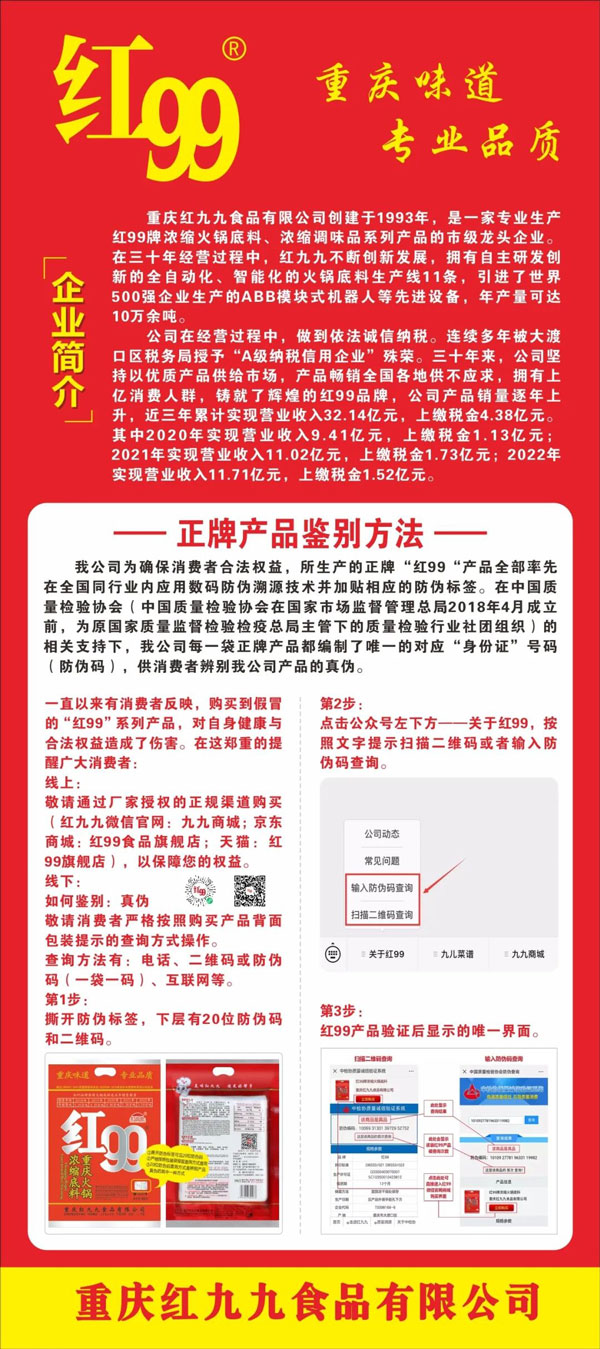 在剛剛閉幕的全國兩會上,政府工作報告明確指出,要著力擴大國內需求,把恢復和擴大消費擺在優(yōu)先位置。作為質檢協(xié)會會員企業(yè),我國重慶麻辣火鍋復合調料行業(yè)領軍企業(yè)重慶紅九九食品有限公司董事長黃萬明直言:“高質量發(fā)展離不開產品和服務質量的提升,產品和服務質量提升是消費的助推器。消費作為內需的重要組成部分,促進居民消費也是實施擴大內需戰(zhàn)略的重要抓手。促進消費升級,關鍵要在供給端的產品和服務質量提升方面去發(fā)力。多年來,在質檢協(xié)會的支持下,重慶火鍋底料行業(yè)在發(fā)展中不斷提質升級,視質量為生命,以高質量為追求,不但順應了消費者的需求變化,也切實滿足了人民群眾的美好生活需要。”